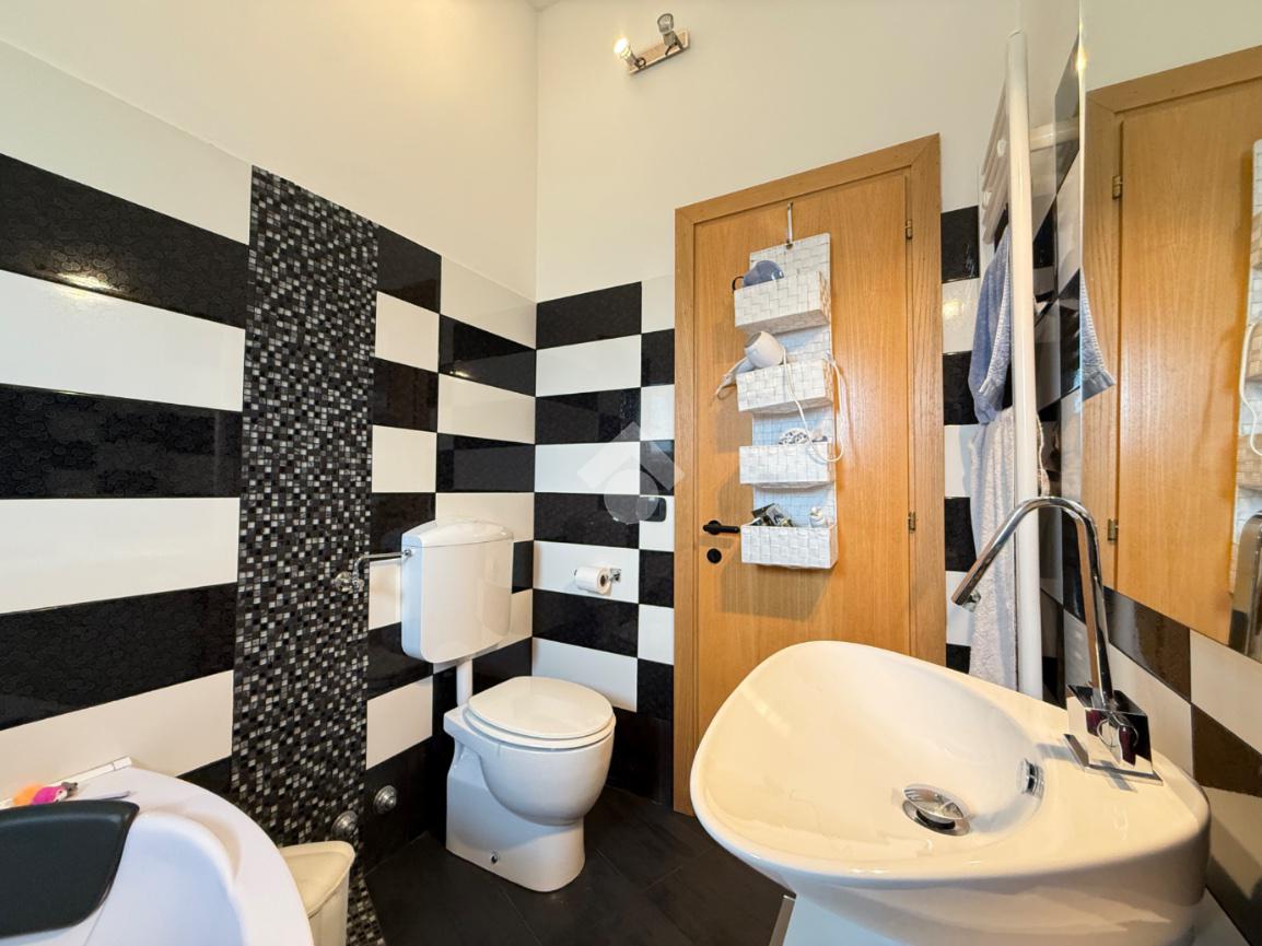 La zona notte ospita quattro camere da letto, di cui tre matrimoniali, e due bagni: uno con doccia e uno dotato di vasca idromassaggio, pensati per garantire funzionalità e comfort a tutta la famiglia.