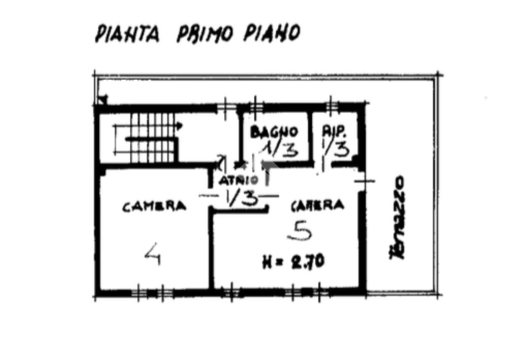 Salendo al primo piano si apre la zona notte, composta da due camere matrimoniali di generose dimensioni, di cui una con accesso diretto alla terrazza, perfetta per momenti di relax all’aperto. Sono inoltre presenti un bagno e un comodo ripostiglio, aggiungendo ulteriore praticità agli spazi.