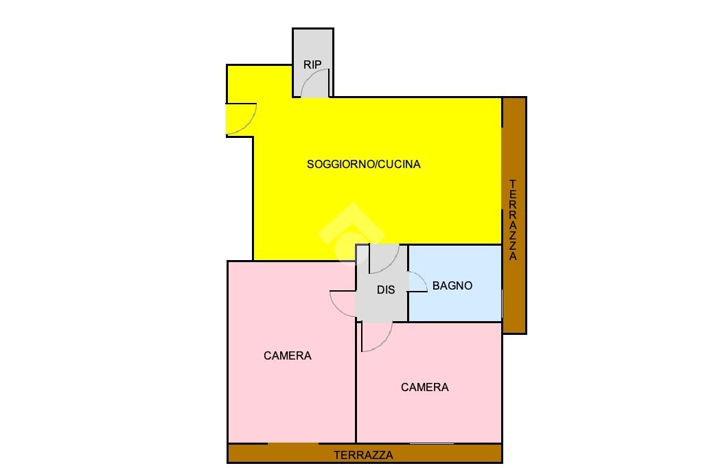 L'immobile si compone di una zona giorno con soggiorno e cucina openspace, dotati di accesso al terrazzo. La zona notte è composta da due camere da letto di cui una matrimoniale dalla quale si accede al secondo terrazzo una singola ed un bagno finestrato.