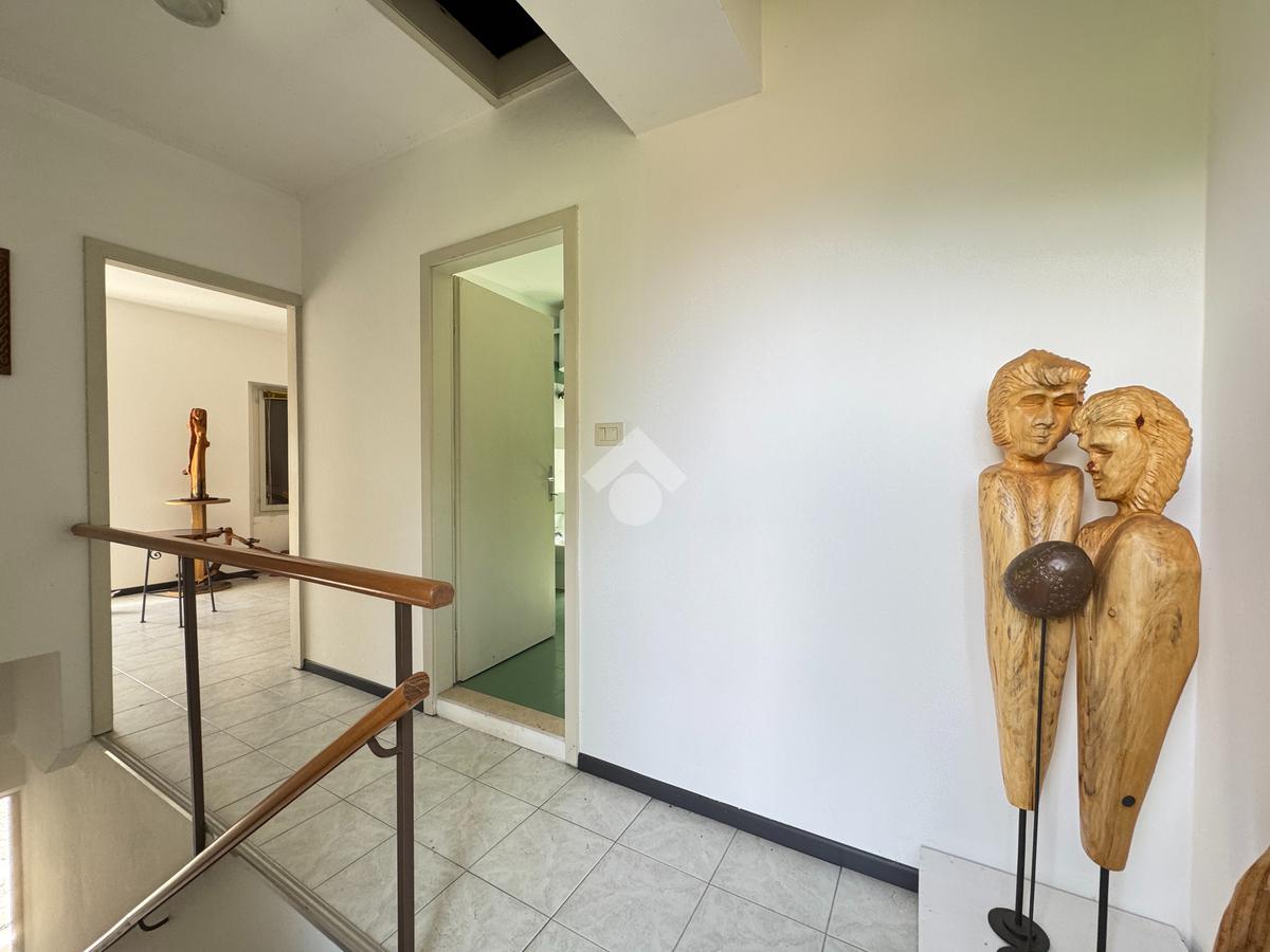 Sempre nell'ingresso, si trovano le scale che portano al primo piano, dove un comodo disimpegno dà accesso alla zona notte completa di: camera matrimoniale, caratterizzata da una piacevole doppia esposizione, bagno finestrato con doccia, e a una seconda camera con uscita su un terrazzino, ideale per rilassarsi all’aperto.