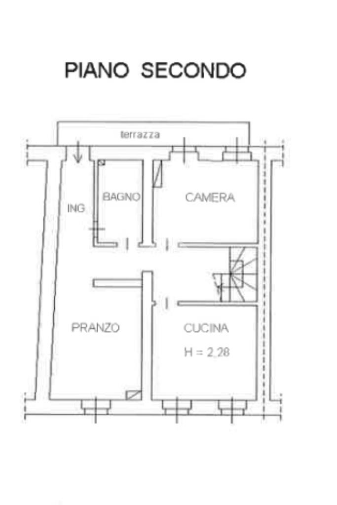 Appartamento al primo piano, disposto internamente su due livelli, situato in una piccola palazzina priva di spese condominiali.